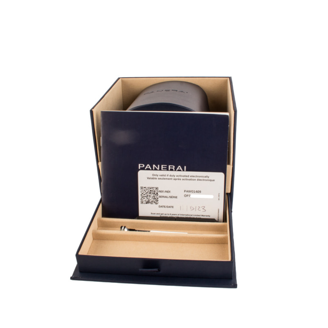 Pre-owned Panerai Luminor Chrono Navy SEALs PAM01409 (2023) is a rugged tribute to elite precision, built with the kind of military-grade presence Panerai is known for. Housed in a 44mm Brushed Brunito steel case (an aged-look brushed steel), the watch carries a battle-worn aesthetic. The degradé grey grenée dial shifts from light to dark with depth and texture, punctuated by luminescent Arabic numerals, hollowed chronograph registers at 3 and 9, and a central chronograph seconds hand sweeping over a tachymeter scale etched into the rehaut. The signature crown guard reinforces the brand’s unmistakable identity, while the automatic P.9200 caliber inside keeps things running with reliability and force. More than just a tactical chrono, this Luminor wears its toughness with style and substance, making it a bold choice for those who want their watch to feel like mission gear but look at home off duty.