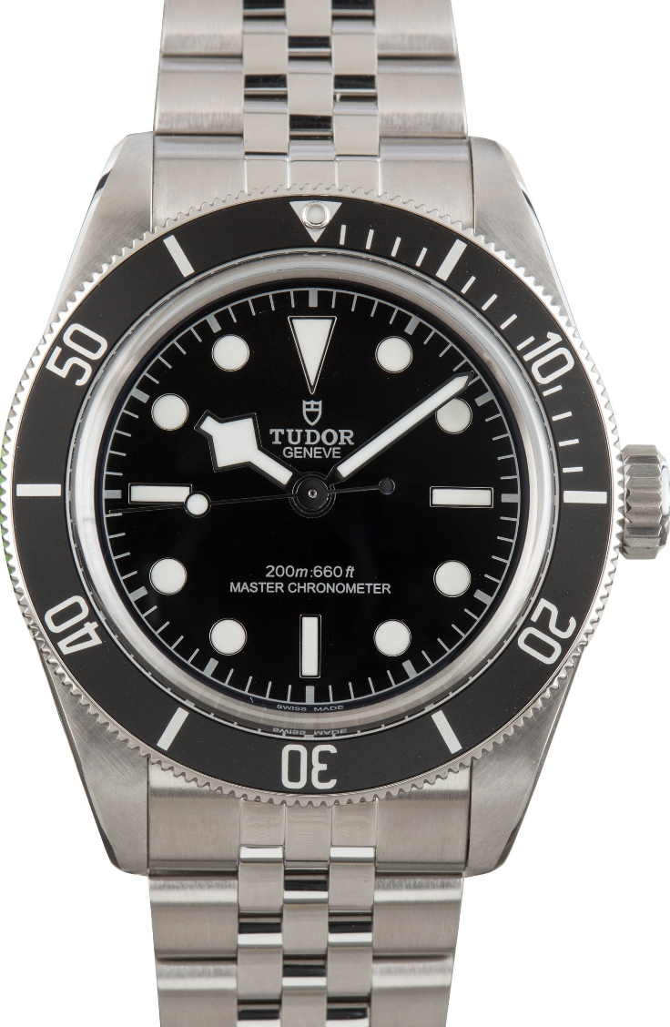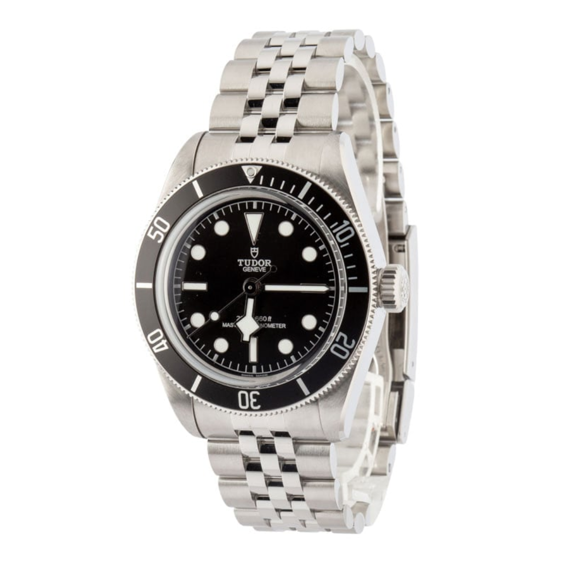 Pre-owned Tudor Black Bay ref M7941A1A0NU (2024) is the new monochrome model. While the rest of the Black Bay range typically has splashes of color here and there, whether the bezel or gilt-style dial, the new 2024 Tudor M7941A1A0NU adopts a strictly all-black and silver colorway. The bezel is decorated with a silver 60-minute diver’s scale, and the dial has white gold hour makers and hands filled with crisp, white luminescent material. It is a welcome extension of the current-production Black Bay 41 that looks a lot like parent company Rolex’s 5-digit Submariner, complete with an aluminum bezel. Of course, ref. M7941A1A0NU is undeniably Tudor, featuring a crown without guards and distinctive Snowflake hand. Additionally, the watch features the in-house caliber MT5602-U self-winding mechanical movement with a COSC and Master chronometer distinction.